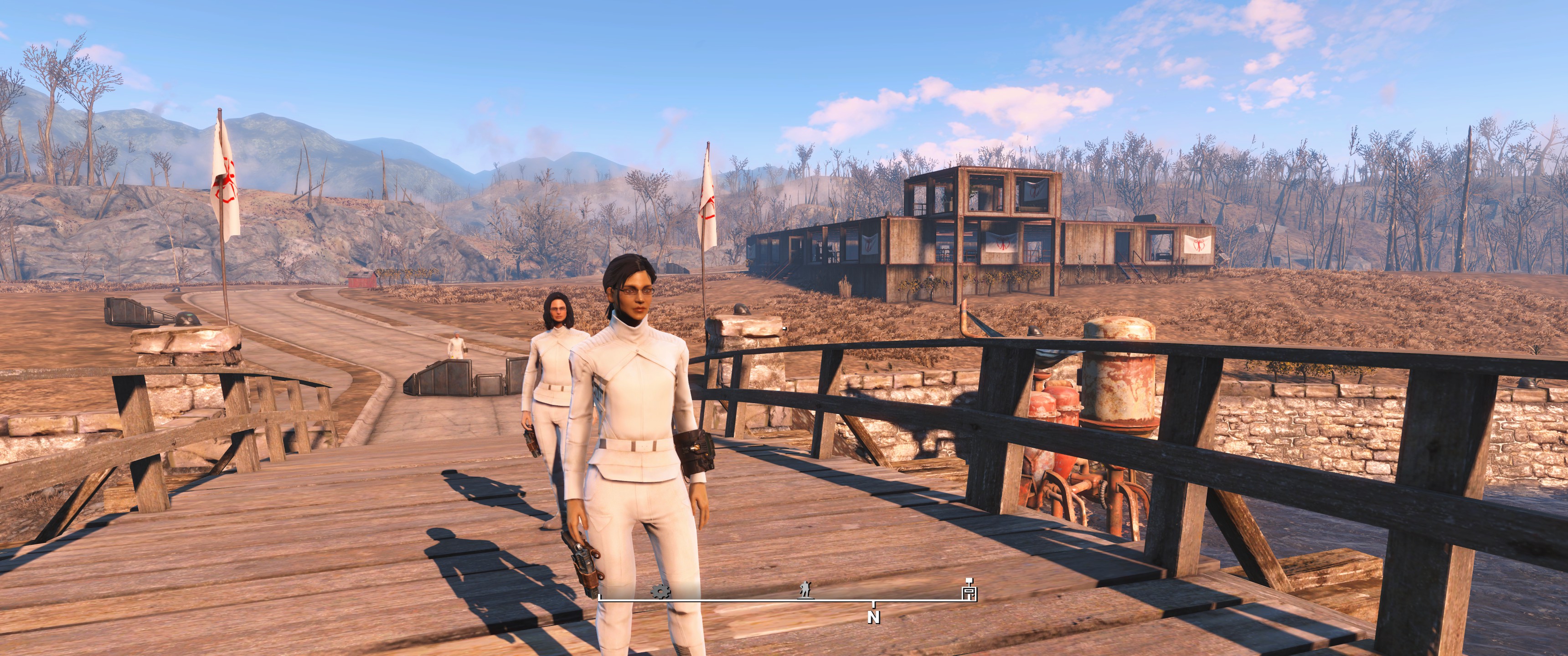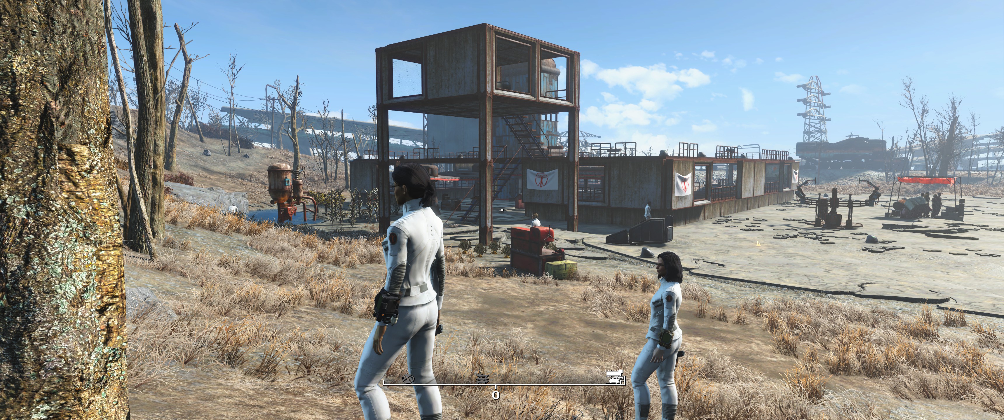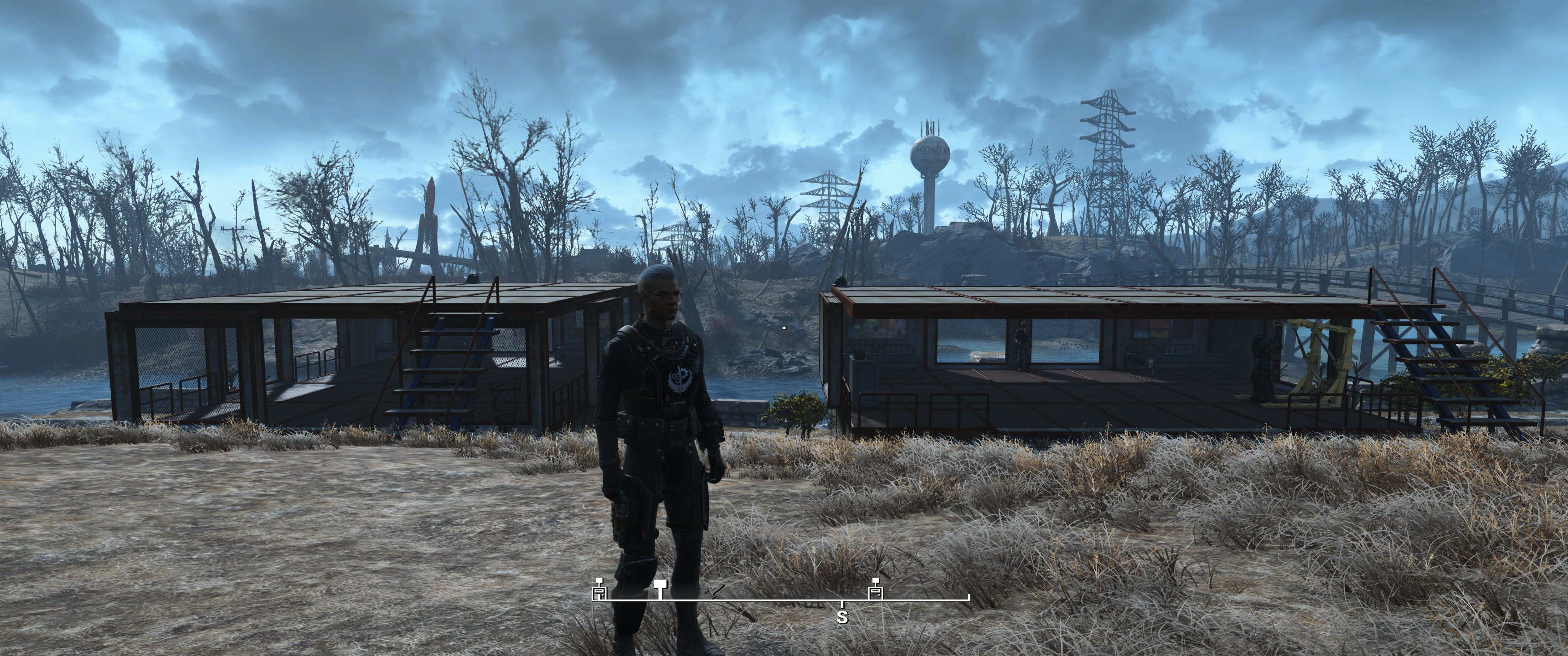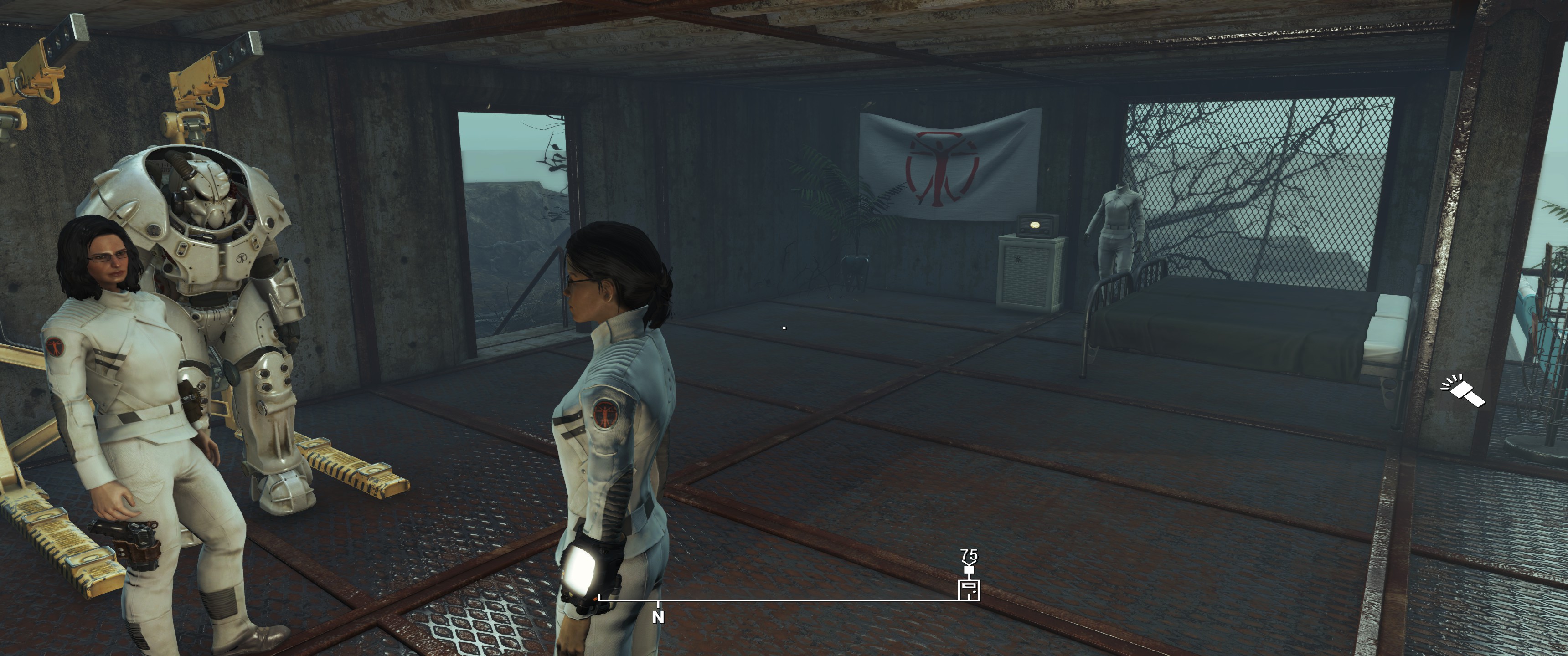 Hier lege ich meist zu Beginn Sanctuary fest, die Siedler werden mit den Synth Uniformen buchstäblich uniformiert, mit Laserwaffen ausstaffiert und die Siedlungen / Möbel etc. halte ich gerne in weiß / hellen Tönen. Schön und sauber möbliert.