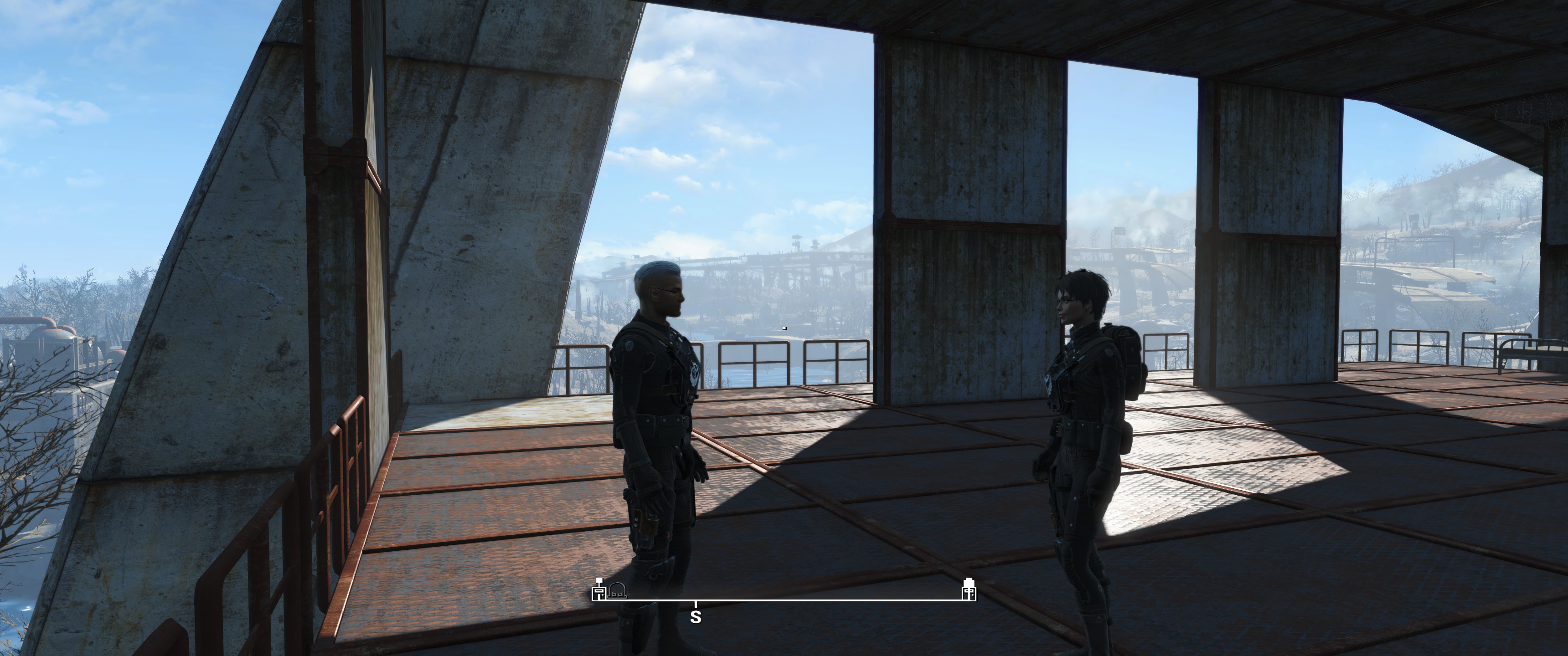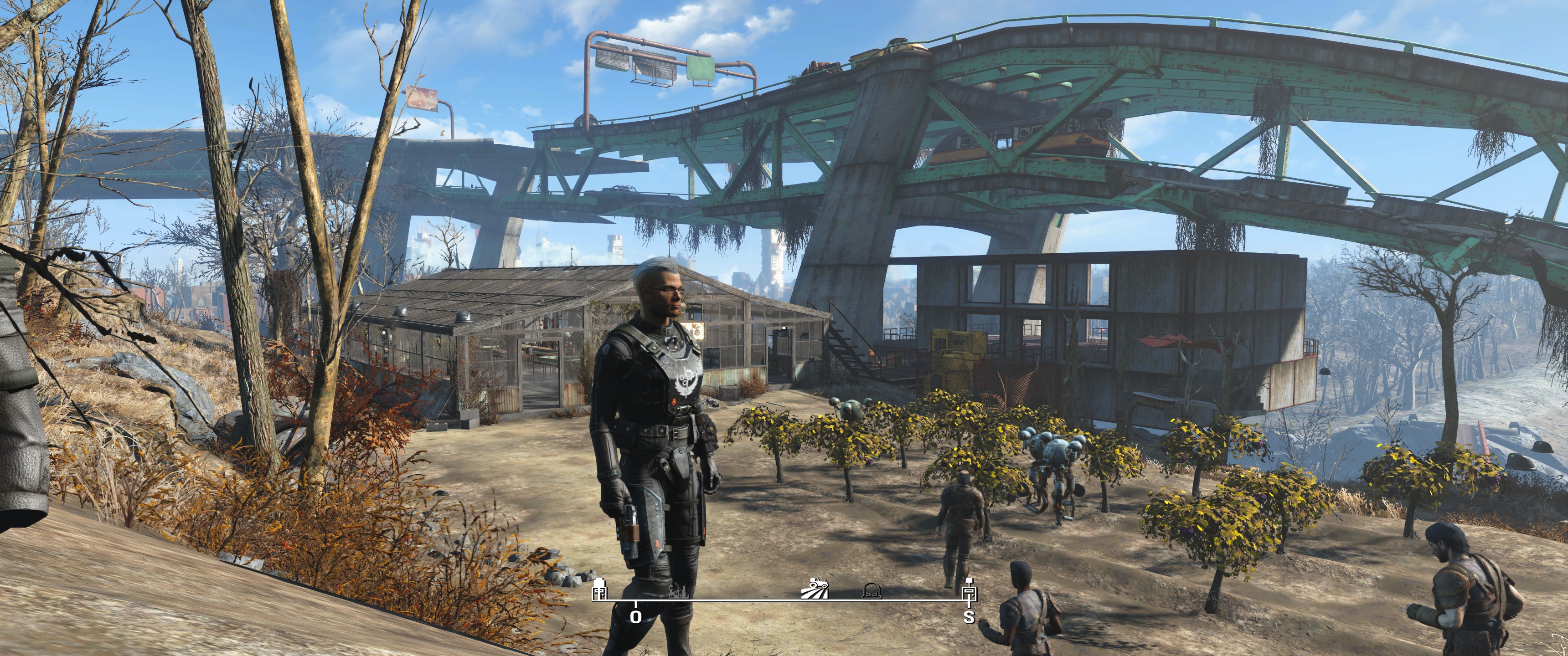 Startbasis ebenfalls Sanctuary, diesmal aber in "schmutzigem, militärischen" braun / schwarz gehalten, die Siedler stiefeln in BoS Rüstungen und Klamotten rum, hier ausstaffiert mit Schusswaffen. Zumeist 10mm Pistolen und diverse Gewehre.