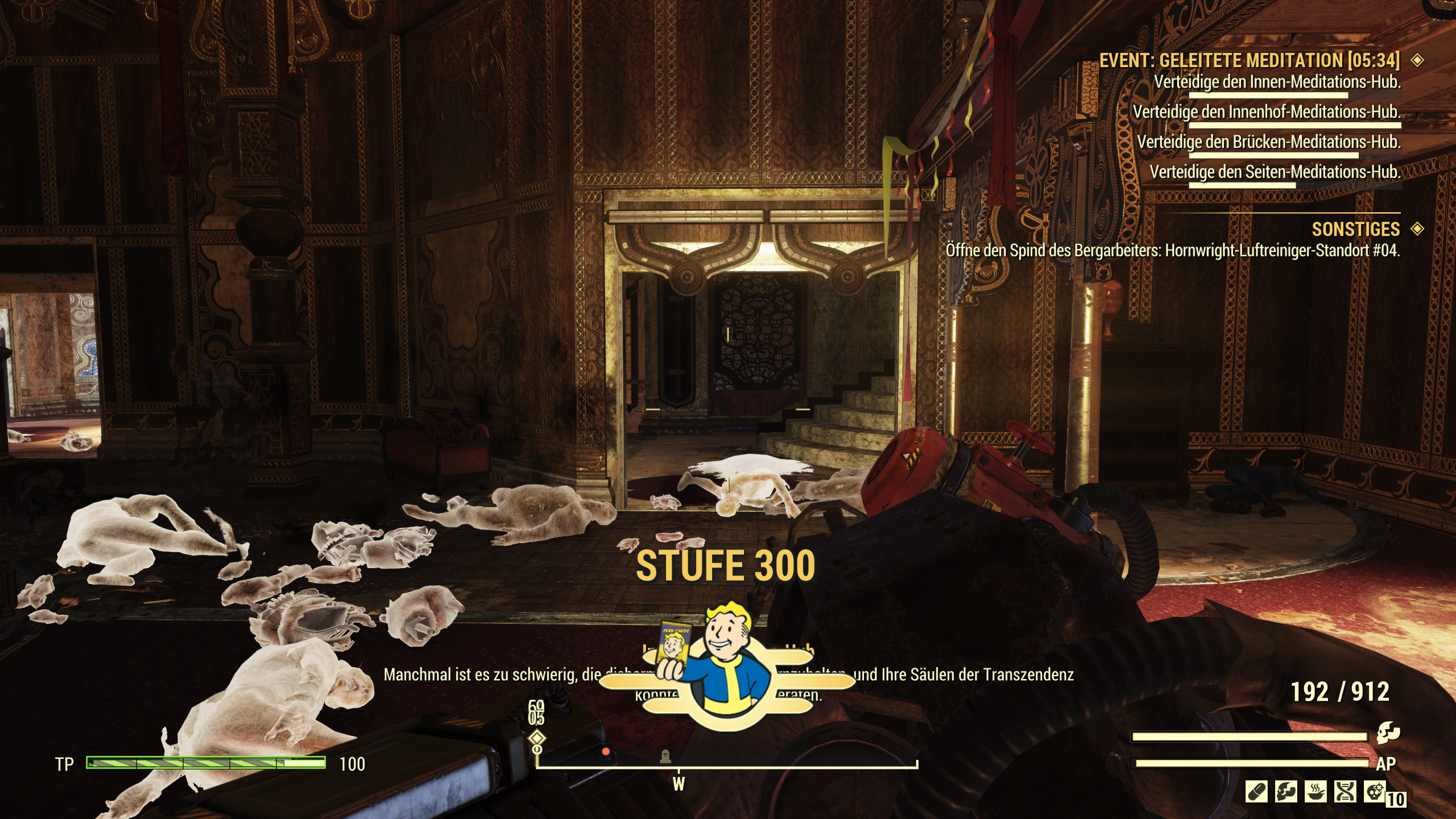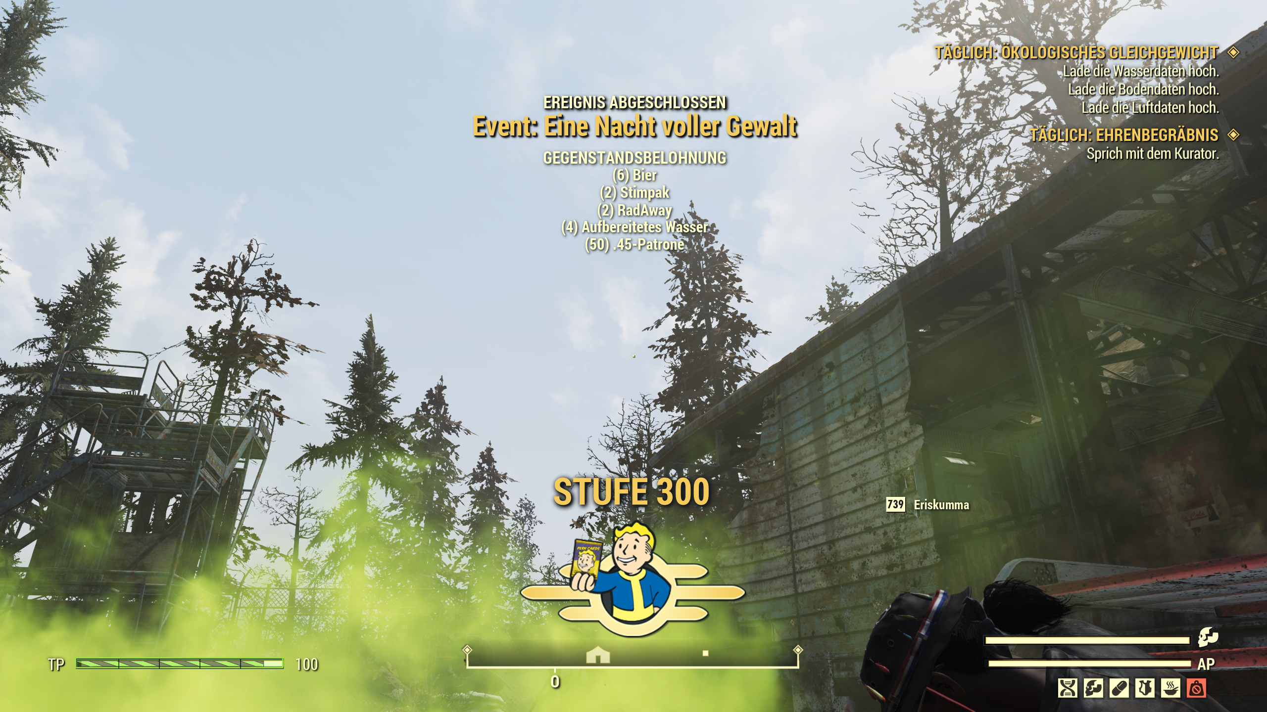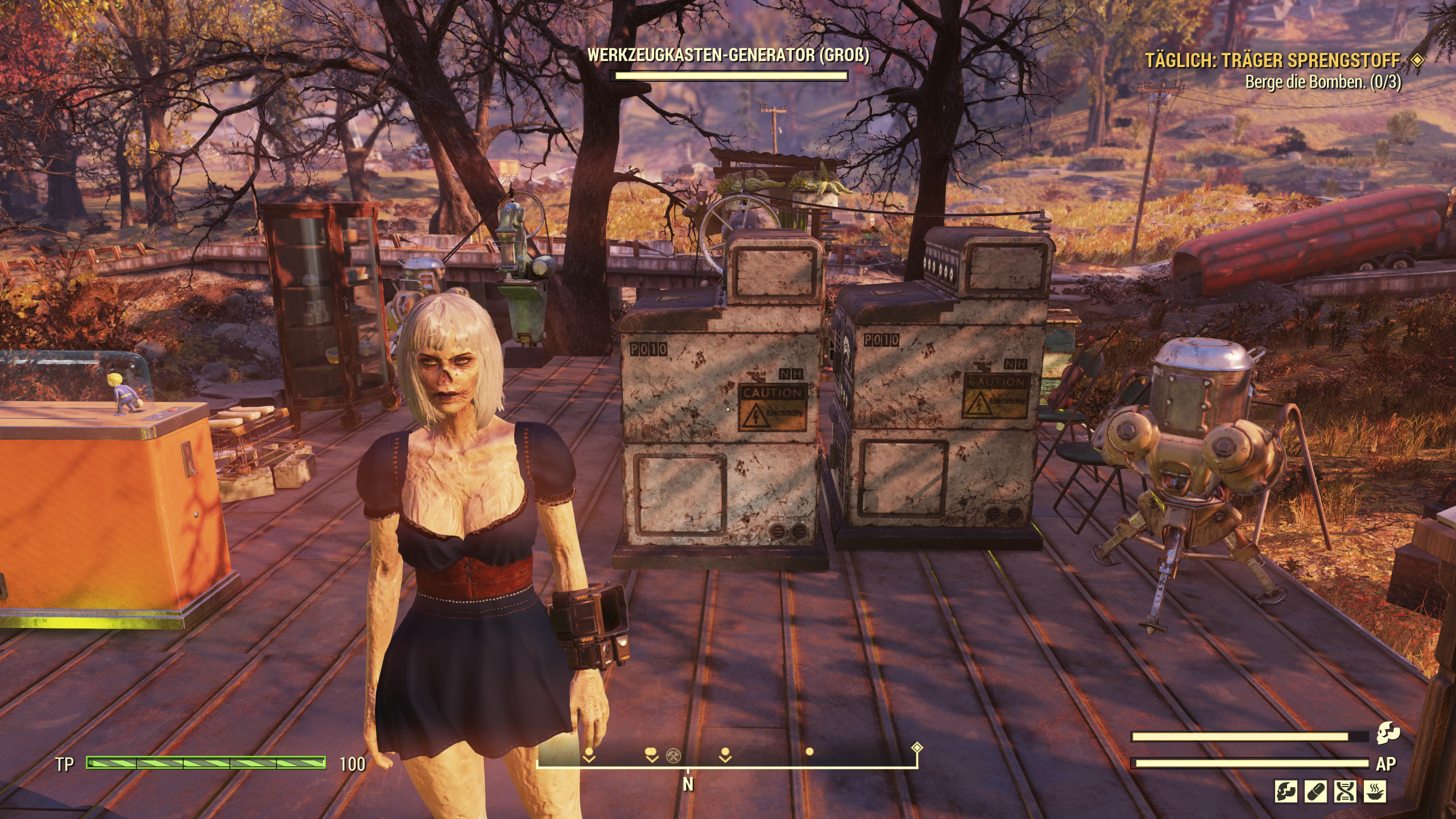 Meine Verstrahlte ist hauptsächlich auf Nahkampf geskillt. Ich vermisse jedoch meine großen Waffen, die ich bis da fast nur benutzt habe.