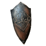 Schild, der auf Ecken verzichtet und aus verschiedensten Materialien hergestellt werden kann. Er ist je nach Material leicht und durch die runde Form stabiler, als andere Schilde, schützt aber eine geringere Fläche. |