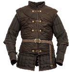 | Ein aus mehreren Stoffschichten oder mit Rohwolle gefüllte Textilrüstung, die einzeln oder als Unterkleidung einer Rüstung verwendet wird. |
